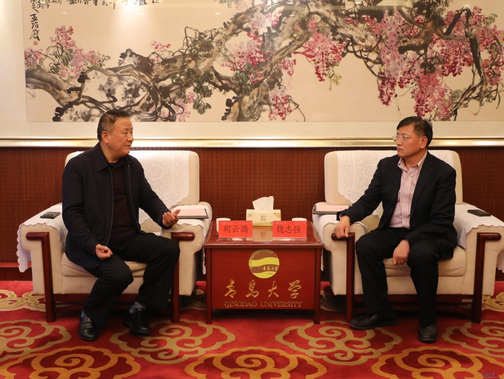 魏志強對胡云騰來校訪問表示熱烈歡迎。他簡要介紹了青島大學近期學科建設、人才隊伍建設和事業發展取得的成績。他表示,中國法學會案例法學研究會一直非常關注和支持青島大學法學學科的建設,給予了學校很多的幫助和支持,希望胡專委和中國法學會案例法學研究會繼續關心和支持青島大學事業發展,在學科建設、人才培養、博士點申報等方面繼續給予指導和幫助。