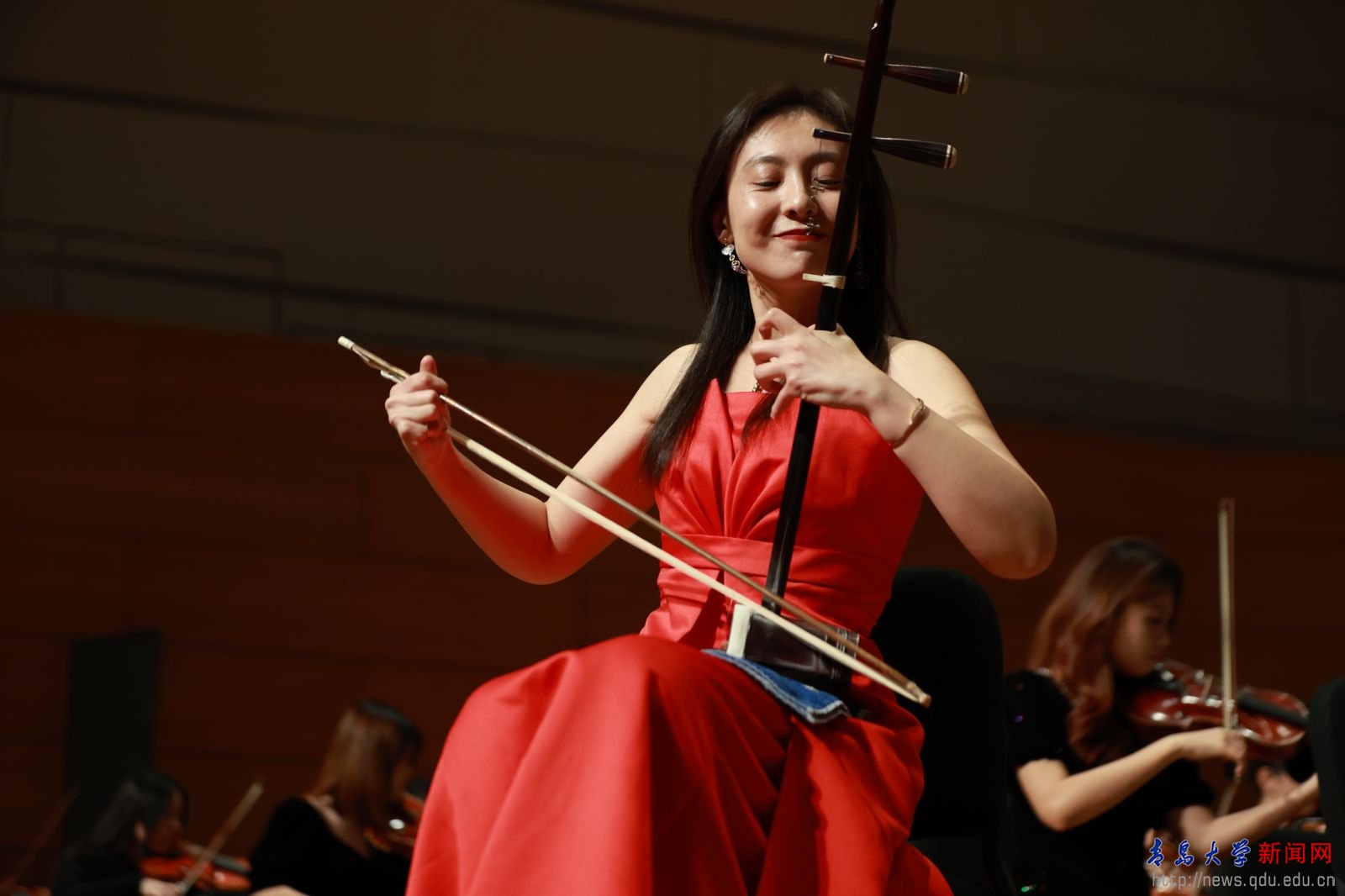 交響樂《北京喜訊到邊寨》、古箏協奏曲《云裳訴》、交響樂《瑤族舞曲》、二胡獨奏《戰馬奔騰》、交響樂《火把節》、中阮齊奏《絲路駝鈴》等曲目讓現場師生們領略到了不同民族的音樂魅力,感受中華文化的悠遠長音。