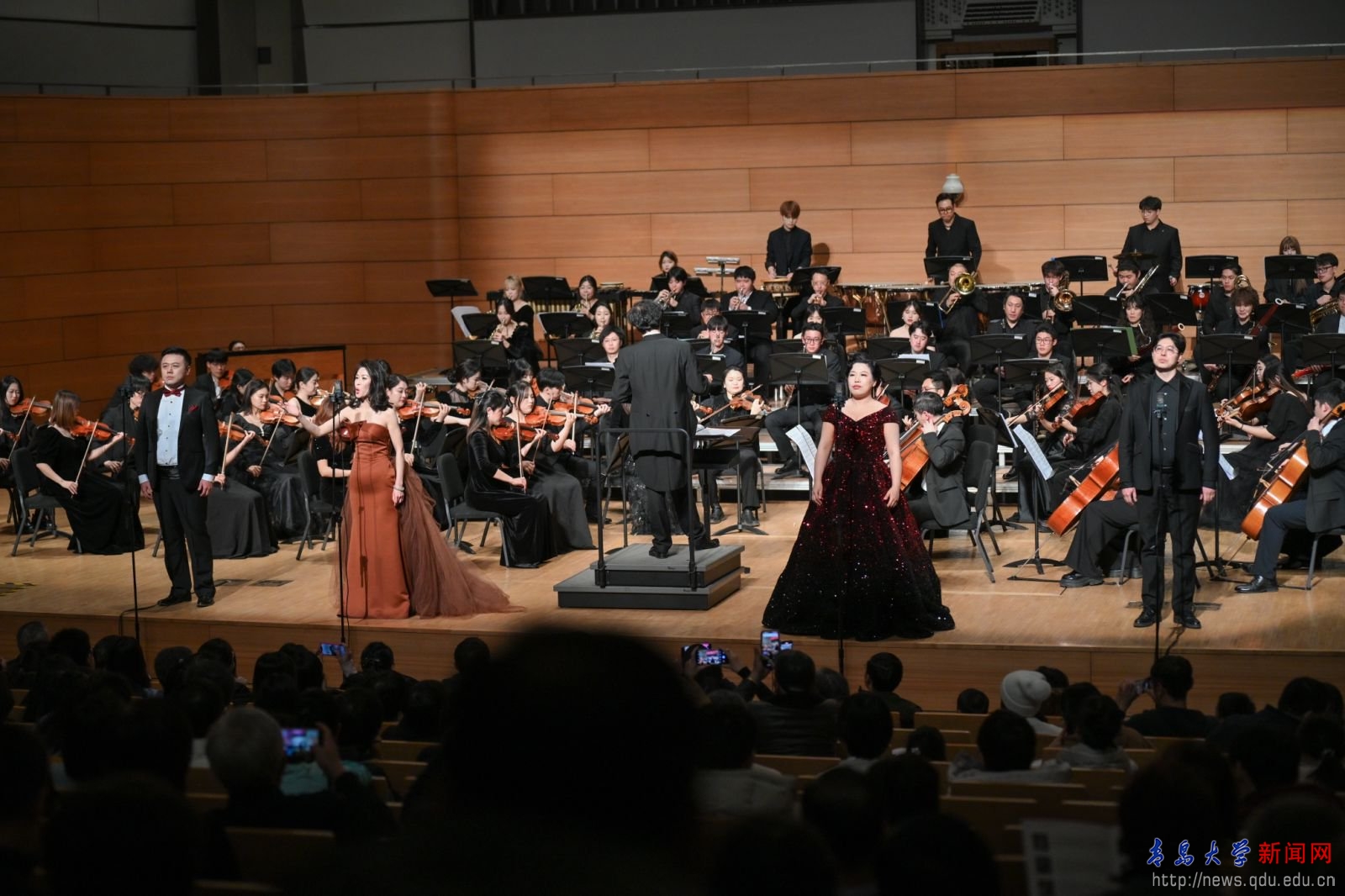 新聞網訊 歲序更替,華章日新。1月2日晚,“新年華章 樂享嶗山”交響音樂會暨青島大學2025新年音樂會在在青島大劇院精彩上演。校領導胡金焱、魏志強、肖江南、胡欽曉、何燕、李軍、吳世珍以及來自政府、合作企業、兄弟院校、附屬學校等的各界客人與學校師生醫務員工和校友一起,共賞音樂盛會。青島大學交響樂團和合唱團,藝術學院聲樂專業、民樂專業的教師和學生們演繹了一首首中外經典曲目,為觀眾帶來一場精彩紛呈的視聽盛宴。