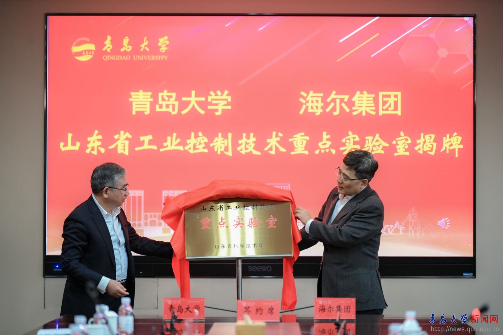 胡金焱與周云杰共同為山東省工業控制技術重點實驗室揭牌。