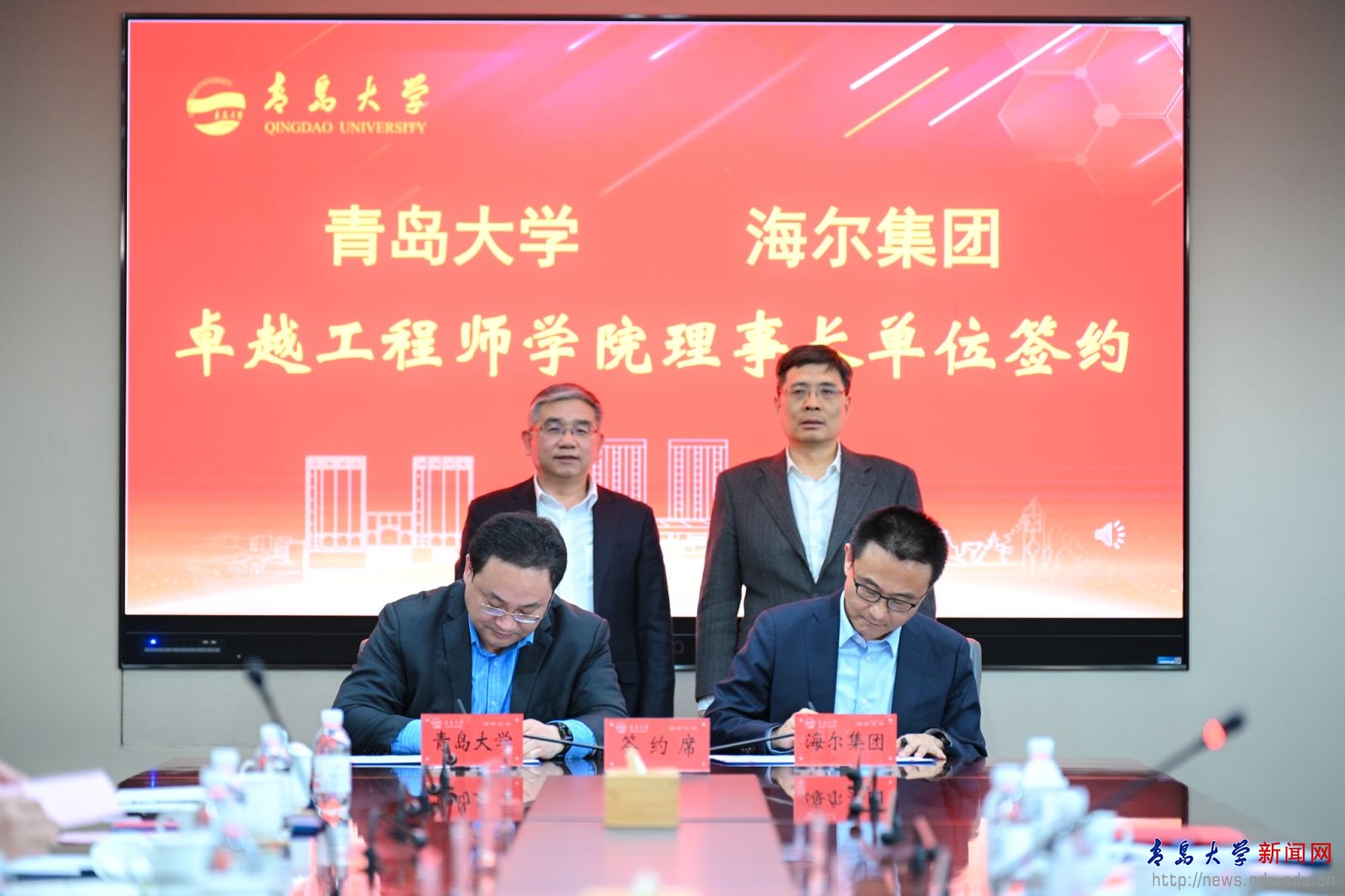 座談會上,學校黨委常委、副校長李建波和海爾集團首席技術官(CTO)王曄共同簽署《青島大學卓越工程師學院理事長單位框架協議》。
