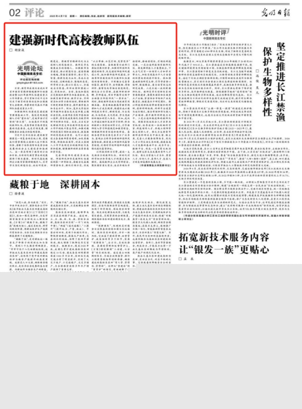 新聞網(wǎng)訊 4月7日,《光明日報(bào)》刊登我校黨委書記胡金焱的理論研究文章“建強(qiáng)新時(shí)代高校教師隊(duì)伍”。