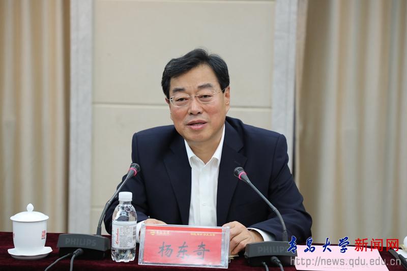 楊東奇在講話時說,這是他第五次來到青島大學,每一次來都能感受到青島大學的可喜變化,感受到同學們青春飛揚、奮發有為的精神風貌,感受到青大老師們立德樹人、誨人不倦的品格風范。他簡要回顧了前幾次來青島大學的經歷,對青島大學近幾年取得的成績表示贊賞。隨后,他就“為什么讀書、讀什么書、怎么讀書”等問題向在場師生講授了一堂關于“讀書”的思政課。