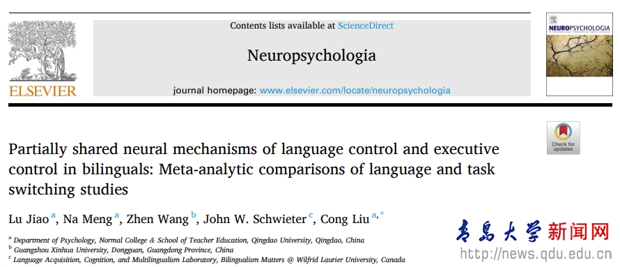 王涵在Bilingualism: Language and Cognition(SSCIQ1, IF =3.532)發表題為 《Theforeign language effect on altruistic decision making: Insights from the framing effect》的研究論文,該研究利用腦電技術探討了利他決策中的外語效應;孟娜在Neuropsychologia(SSCIQ2, IF =3.139)發表題為《Partially shared neural mechanisms of language control and executive control in bilinguals: Meta-analytic comparisons of language and task switching studies》的研究論文,該研究利用腦成像ALE元分析探討了雙語者語言控制和執行控制神經基礎的異同;段曉婷在Journal of Neurolinguistics(SSCIQ2, IF =1.71)發表題為《Comprehension-based language switching between newly learned languages: The role of individual differences》的研究論文,該研究利用腦電技術探討個體差異對新學語言間語言轉換的影響。上述三項研究成果的指導教師為學院心理學系腦與語言認知實驗室(https://www.jlclab.com/)的劉聰副教授與焦魯副教授。
