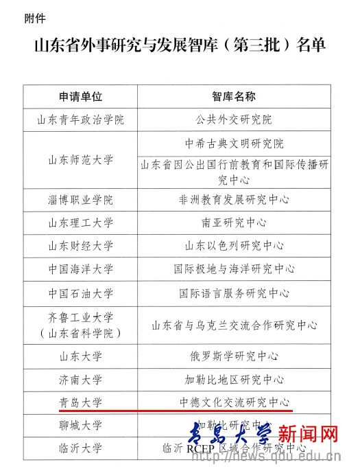 座談會(huì)上,公布了山東省外事研究與發(fā)展智庫(kù)(第三批)名單,確定14家研究機(jī)構(gòu)為山東省外事研究與發(fā)展智庫(kù),我校外語(yǔ)學(xué)院申報(bào)的“中德文化交流研究中心”成功入選,實(shí)現(xiàn)外語(yǔ)學(xué)院省級(jí)智庫(kù)平臺(tái)建設(shè)的突破。