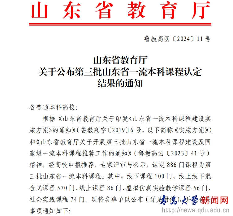新聞網訊 近日,山東省教育廳下發《山東省教育廳關于公布第三批山東省一流本科課程認定結果的通知》(魯教高函〔2024〕11號),我校《3ds Max 基礎教程》等33門課程被認定為省級一流本科課程,其中線上課程5門,線上線下混合式課程18門,線下課程2門,社會實踐課程5門,虛擬仿真課程3門。截至目前,學校共獲批國家級一流本科課程22門、省級一流本科課程104門。