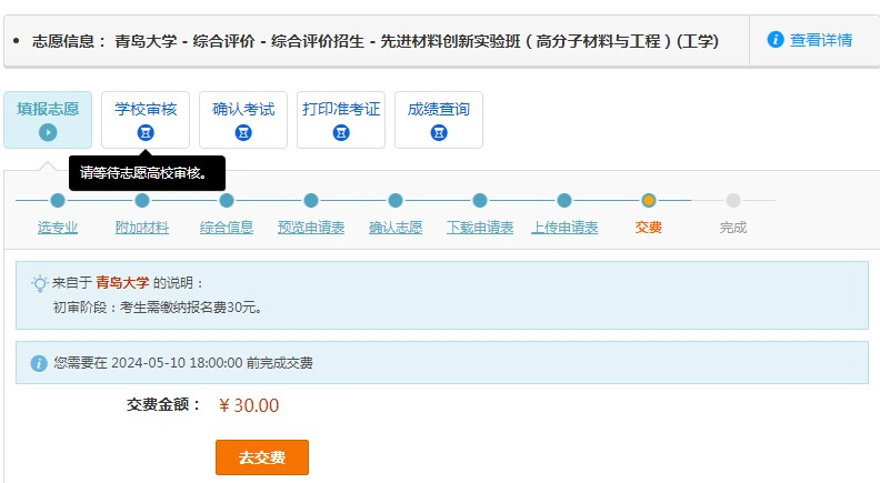 (一)材料審核:報名結束后,學校組織專家審核考生報名材料,審核完成后在學校本科招生網站上公示通過初審的考生名單,請關注青島大學本科招生信息網相關通知。