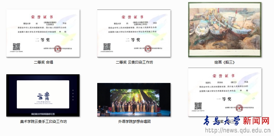 新聞網(wǎng)訊 近日,由教育部、四川省人民政府主辦的全國第六屆大學生藝術展演在成都舉行。我校在比賽中獲一等獎1項,二等獎2項,實現(xiàn)我校參加國賽新突破,充分體現(xiàn)了我校美育的水平和成果。