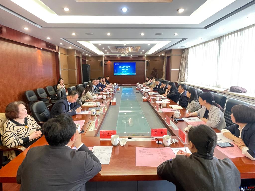 新聞網訊 4月17日上午,江漢大學副校長張紅星一行10人來訪我校。校黨委常委、副校長牛海濤在辦公樓第五會議室會見并座談。雙方圍繞“十五五”規劃編制、高水平學科建設、醫教協同、高校薪酬制度改革、人才引育、學生管理及思想政治教育等進行深入交流研討。