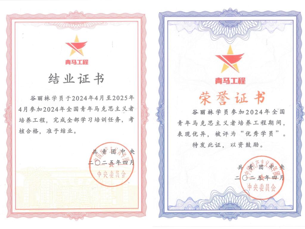 新聞網(wǎng)訊 近日,由共青團(tuán)中央主辦的青年馬克思主義者培養(yǎng)工程全國班2024年度結(jié)業(yè)式在中央團(tuán)校舉行,2024年全國“青馬工程”高校班學(xué)員、學(xué)校文學(xué)與新聞傳播學(xué)院2024級(jí)比較文學(xué)與世界文學(xué)專業(yè)碩士研究生谷麗林參加活動(dòng)并被評(píng)為全國“青馬工程”優(yōu)秀學(xué)員。